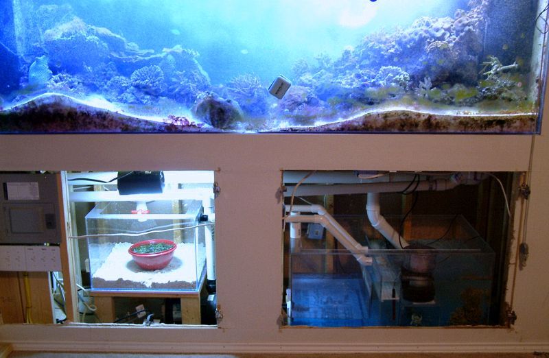 The refugium is on its own stand. A Dolphin Ampmaster 3000 is