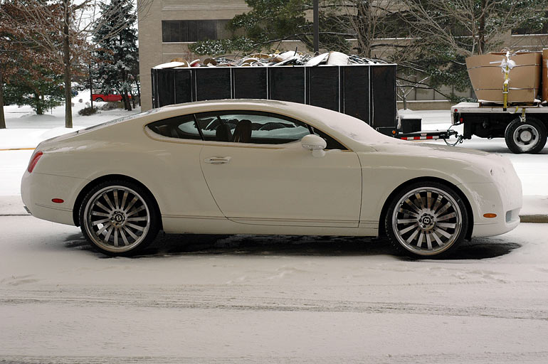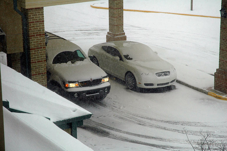 My trip to Cleveland to speak to C-SEANovember 20 - 22, 2008: The Board of Directors from the Cleveland Saltwater Enthusiasts Association contacted me to come out and speak to their club... This trip included visiting a couple of stores in Columbus, a bunch of snow, and a visit to Savko. We stopped at my hotel after that trip to the east, bringing back some snow with us. The Bentley elicted comments from a few passerbys. It never moved during my stay. The lobby was very nice.