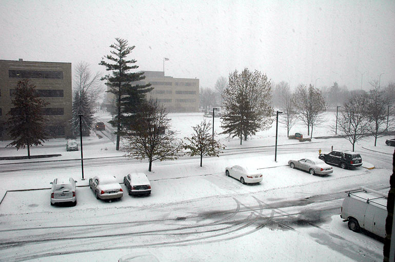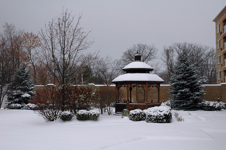 Due to the wintery weather, traffic was slow and it took a while for our group to gather up for the drive to Columbus. While I waited, I checked out the courtyard.