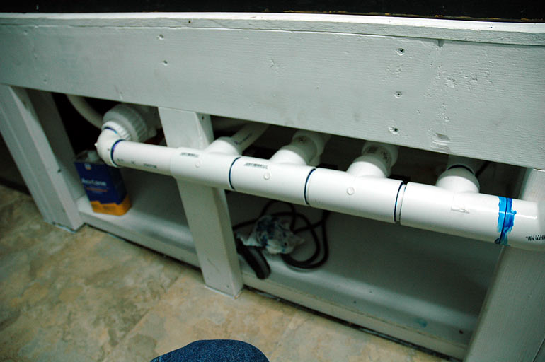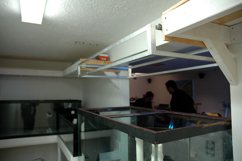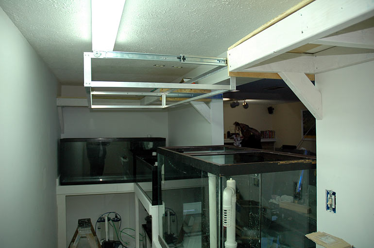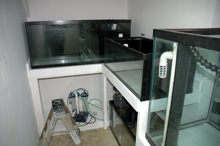 Jeff next took me to Sean's basement to see his in-progress 150g project. It is going to be in in-wall system. Temporary holding tanks for his livestock.