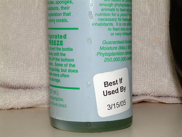 Another liquid food used is Phytoplankton, whether it is purchased at the LFS or homegrown by the hobbyist. Phytoplankton has made my soft corals perk up, and micro-fauna in our tanks feed upon it. When buying it, be sure to check the expiration date, and smell it for freshness. If it smells spoiled, it is. Dosing it every other day is sufficient, and will result in good pod growth in your reef for some fish such as wrasses and mandarins to feed upon. When feeding phytoplankton, I’ve always turned off the protein skimmer for an hour to keep the food in the water longer.