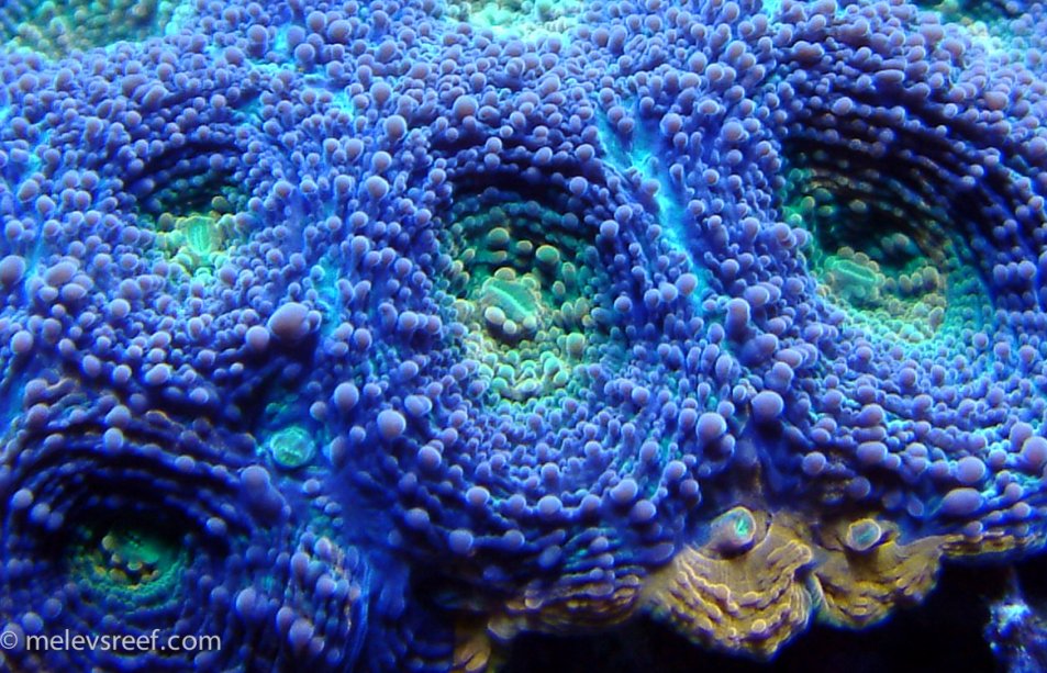 I spotted this coral during one of my tank tours, and captured this image. Later I had it printed and framed, and it still hangs on the wall when you enter my home. this is an Acanthastrea echinata.